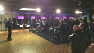 Een volle zaal bij de bijeenkomst in het stadion van PEC Zwolle.