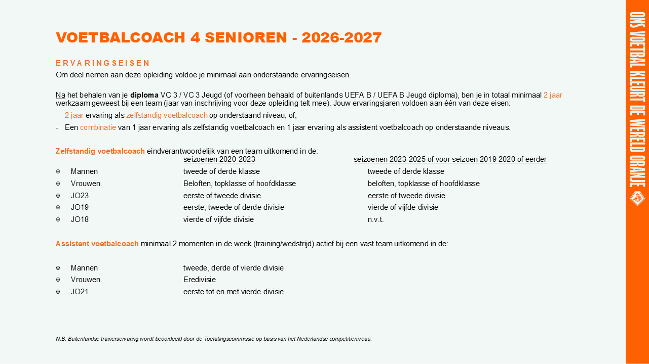 N.B: Buitenlandse trainerservaring wordt beoordeeld door de Toelatingscommissie op basis van het Nederlandse competitieniveau.