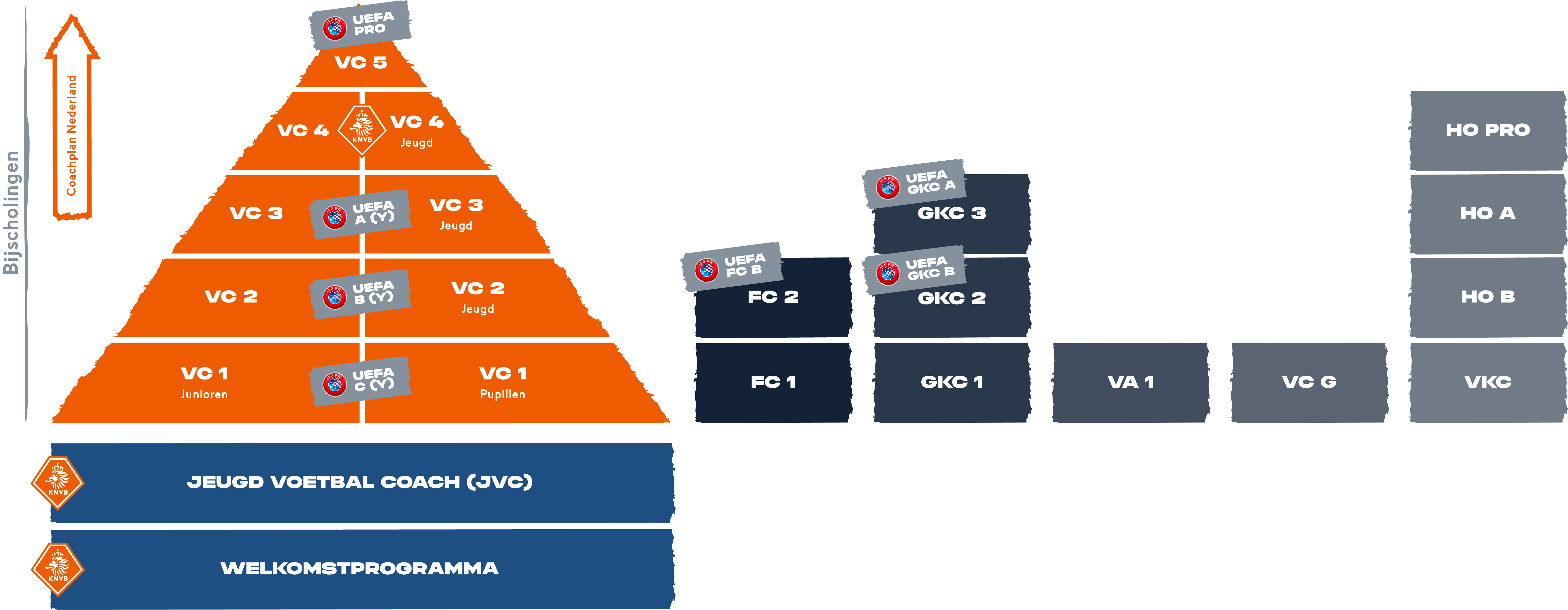 Alle opleidingen van de KNVB Academie zijn ondergebracht in één opleidingsmodel, zie hierboven.