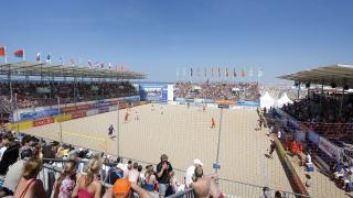 Het speelveld bij Beachsoccer.