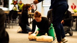 — Foto: Na een presentatie van Abderrahim Nouri volgde de reanimatiecursus.