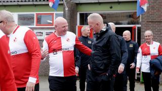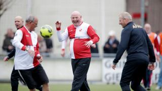 Van Rijnsoever hoopt dat er dan een basis ligt waar de club op verder kan borduren. "En misschien raken de mensen ook weer betrokken bij de club en gaan vrijwilligerswerk doen. Dan snijdt het mes aan twee kanten." Tijdens de afsluitende lunch vinden de formulieren voor de vervolgtrainingen gretig aftrek. Ook Maarten Oliemans schrijft zich in. Ik heb gescoord, dat smaakt naar meer, zegt hij glunderend. Het is ook heerlijk dat je buiten bent. De sportschool is niks voor mij. Ook Rob Lakeman is er de volgende keer weer bij. Tip van de dag is dat iemand die stiekem rent voor straf met loodschoenen moet spelen. In het gelach neemt de man het woord die alles vanaf de zijlijn heeft geobserveerd. "Het was ontzettend leuk om te zien en ik geniet van de sfeer. De volgende keer ben ik er ook bij." Applaus.