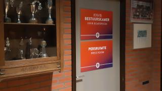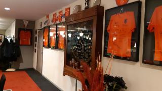 In de bestuurskamer hangen meerdere Oranjeshirts met handtekeningen van de jeugdinternationals.