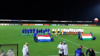 Op de deur van de bestuurskamer hangt een oranje bordje met het logo van de voetbalbond. ‘KNVB Bestuurskamer’ staat erop. Eronder hangt een bordje ‘Pers’. Ook op andere plekken in het clubgebouw zijn de oranje bordjes terug te vinden. Het mag duidelijk zijn. Achilles 1894 is even geen alleenheerser op het eigen sportcomplex. Het deelt de accommodatie een aantal dagen met de KNVB. Op het veld staan deze week niet alleen de eigen lokale helden, maar zijn ook de grootste talenten onder 16 jaar van Nederland en Hongarije te bewonderen. Ze trainen er en spelen er hun wedstrijden.