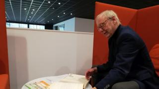 Frans Vermeij bladert door zijn plakboeken bij de KNVB in Zeist. - Foto: KNVB Media