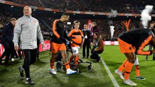 Thijmen is een fanatiek Frame-voetballer en mocht in 2018 het veld op met Memphis voor de interland Nederland - Frankrijk. - Foto: KNVB Media