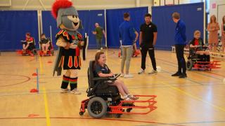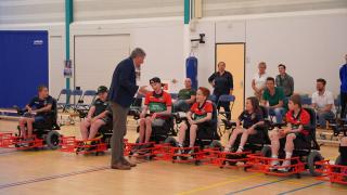 Bij Elektrisch voetbal geeft de bumper van de rolstoel de bal een zwieper.