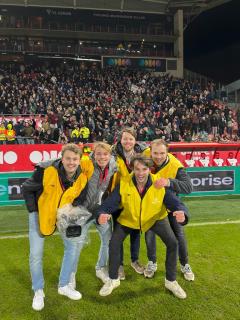 Rafael Lubbers met het social media-team van USV Hercules op de nu al legendarische bekeravond tegen Ajax.