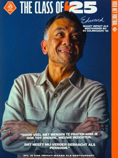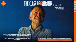 Op Sportpark Achterhoek weet zo’n beetje iedereen wel wie Edward is. "Ik ben al tien jaar actief als bestuurslid. Eerst als jeugdvoorzitter, daarna als hoofd voetbalzaken." Daarmee heeft hij ook zitting in het hoofdbestuur van de vierdeklasser. En hij maakt deel uit van The Class of ’25, een groep van 15 mannen en vrouwen, van verschillende leeftijden uit alle hoeken van het land. Zij zetten zich in voor hun vereniging, hebben impact op het beleid en ontwikkelen tegelijkertijd zelf allerlei competenties die weer van pas komen in hun werk, studie of privéleven.