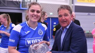 — Simone Hand ontvangt haar prijs voor topscorer van het seizoen. Bron: Sander Kaaij