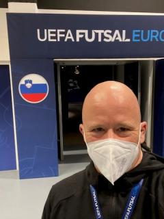 Gino D'Onorio als teambegeleider van de Italiaanse ploeg bij het EK Futsal.