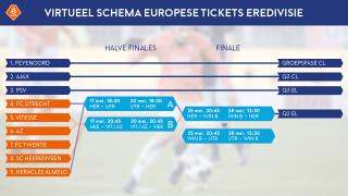 Het virtuele schema voor de Europese tickets in de Eredivisie.