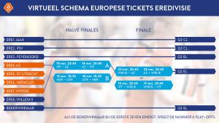 In de Eredivisie plaatst de kampioen zich rechtstreeks voor de derde voorronde van de Champions League. De nummer twee stroomt een voorronde eerder in. De winnaar van de beker, Willem II of Ajax, krijgt het beste ticket voor de Europa League: de derde voorronde. Mocht Ajax - dat zeker is van een plek bij de eerst twee - de beker winnen, gaat dat ticket naar de nummer drie van de Eredivisie en is ook de nummer vier zeker van deelname aan de Europa League (tweede voorronde). De nummers vier tot en met zeven spelen in principe in de play-offs om het laatste Europese ticket. Als de bekerwinnaar bij de eerste zeven eindigt, doet de nummer acht mee aan de play-offs.
