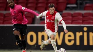 Ajacied Nicolas Tagliafico ontdoet zich van FC Utrecht-aanvaller Gyrano Kerk. - Foto: KNVB Media