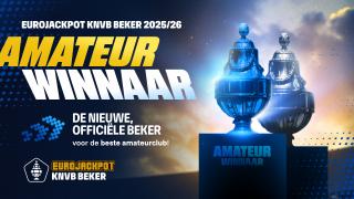 Van Quick Boys en Spakenburg tot VVSB en Hercules: ieder jaar kleuren de verrassingen het bekertoernooi. Met ingang van seizoen 2025/26 introduceert de Eurojackpot KNVB Beker de Amateurwinnaar, een officiële titel met eigen blauwe ‘Dennenappel’ voor de beste amateurclub in het toernooi. De KNVB Beker is daarmee het eerste bekertoernooi ter wereld met een aparte prijs voor deelnemende amateurclubs.