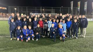 De trainers en jeugdspelers na afloop van het praktijkgedeelte van de Aftrapmodule. - Foto: KNVB Media