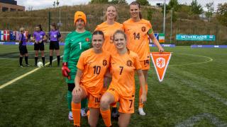 Het Nederlands team voorafgaand aan het duel tegen de Amerikanen. - Foto: KNVB Media