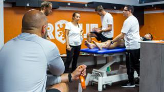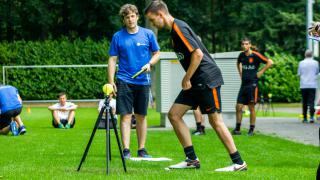 ‘Go, go, go! Come on, come on, come on!’, dreunt het in een benauwd hokje op de KNVB Campus. Terwijl Tom van Reusel zich focust op een stel coördinatie-oefeningen, wordt zijn ploeggenoot Roy Flier nauwelijks twee meter verderop afgebeuld in het Engels met een zwaar, maar prachtig Spaans accent. Martijn Loeffen ziet het hoofdschuddend aan. “Daar ga ik echt niet harder van lopen hoor.”