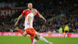 Oranje leek zonder problemen met een voorsprong de rust te halen, maar zover kwam het niet. De scheidsrechter zag een handsbal van Terence Kongolo en dus kreeg de thuisploeg een penalty te nemen. Jasper Cillessen stopte voor het eerst in zijn loopbaan een strafschop, maar was kansloos op de rebound van Joe Ledley. Ruststand: 1-1.