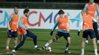 Het Nederlands elftal tijdens de laatste training voorafgaand aan het duel met Luxemburg. - Foto: KNVB Media