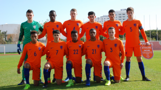 De selectie van Oranje onder 17 voorafgaand aan het duel tegen Engeland.