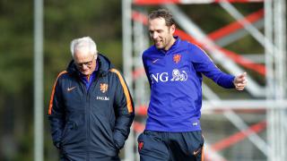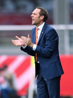 Bondscoach Van der Laan in actie tijdens de training op de KNVB Campus.