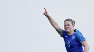 Sherida Spitse scoorde op fraaie wijze de 3-2— Foto:KNVB Media