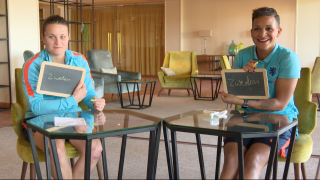 Het Nederlandse vrouwenelftal is voor de Algarve Cup neergestreken in Portugal. De Leeuwinnen spelen drie wedstrijden ter voorbereiding op het WEURO 2017. Tussen de trainingen en wedstrijden door is er ruimte voor ontspanning. Sherida Spitse en Shanice van der Sanden spelen het quizje 'Raad het fragment'.