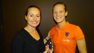 Minke Booij: “Ik ben blij dat we de traditie ook hebben kunnen doortrekken naar de vrouwen. Hoe mooi en bijzonder is het als je je debuut maakt in Oranje. Dat moment vergeet je van je leven niet meer. Dat de internationals nu ook het haasje hebben om ze te herinneren aan hun eerste speelminuten in het Nederlands elftal, is fantastisch”.