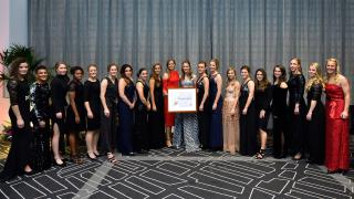 De EK-speelsters die dinsdag 19 december werden benoemd tot bondsridder van de KNVB. - Foto: KNVB Media