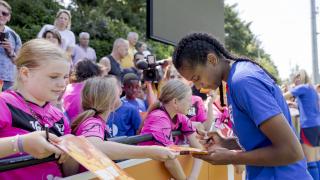 OranjeLeeuwin Esmee Brugts deelt handtekeningen uit aan misschien wel toekomstige Leeuwinnen.