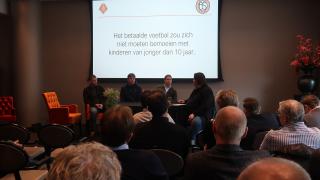 Frank Evenblij leidde een discussiepanel aan de hand van prikkelende stellingen. - Foto: KNVB Media