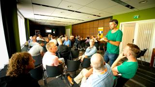 Tim Lubout is namens de KNVB Academie verantwoordelijk voor het bijscholingsprogramma. Hij zag de voetbalbond de afgelopen jaren belangrijke stappen zetten. "We zijn zelf meer de regie gaan voeren. We willen niet alleen iets organiseren zodat de trainers hun punten kunnen halen, maar willen ze ook echt kwaliteit bieden om ze in een kleine setting van de docent én elkaar te laten leren."