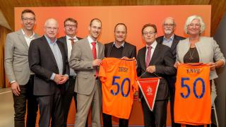 De KNVB en Zeist zijn onlosmakelijk met elkaar verbonden. Zeist wordt dan ook wel 'de middenstip' van Nederland genoemd. Secretaris-generaal Bert van Oostveen overhandigde aan het eind van het bezoek het college twee shirts met op de achterkant de woorden KNVB en Zeist, alsook het rugnummer vijftig, een verwijzing naar de vijftig jaar dat de KNVB inmiddels in Zeist gevestigd is.