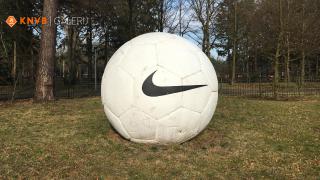 Hij is voor iedereen die de KNVB Campus in Zeist bezoekt of passeert niet te missen: de grote bal midden op het gazon voor het bondsbureau. Niet alleen trekt de bal de aandacht, het is voor (vaak jeugdige) bezoekers ook een geliefd object om mee op de foto te gaan. Het gevaarte - bijna drie meter hoog en enkele honderden kilo’s zwaar - ligt sinds enkele jaren in de voortuin en is een cadeautje van het museum Twentse Welle.