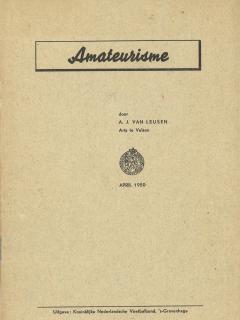 De in 1950 verschenen brochure amateurisme, waarin A. van Leusen namens de KNVB tegen het profvoetbal ageert.