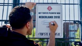 Najib staat verlegen naast zijn grote held Soufiane Touzani. Samen hangen ze het bordje 'Tofste pleintje van Nederland' op. Najib, die om de hoek woont, had het pleintje in het Ed Pelsterpark aangemeld, maar hij kan haast niet geloven dat zijn pleintje het tofste is. "Sliedrecht was ook tof", fluistert hij in de microfoon. "En Apeldoorn ook." Via Instagram heeft hij nu contact met Marijn uit Sliedrecht. Pleintjes verbinden.
