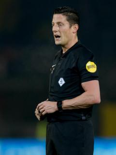 Allard Lindhout fluit FC Utrecht - Heracles Almelo in de play-offs om een Europees ticket. - Foto: KNVB Media