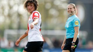 Shona Shukrula leidt vrijdagavond in Dublin het duel Ierland - Hongarije in de UEFA Women's Nations League. - Foto: KNVB Media