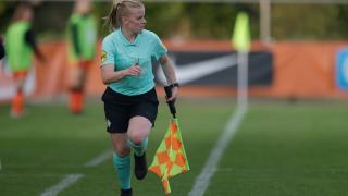 Martina Boer in actie als assistent-scheidsrechter. - Foto: KNVB Media