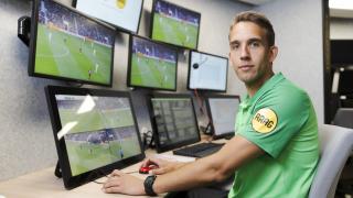 Clay Ruperti is VAR bij het voorrondeduel in de Europa League tussen HNK Rijeka en FC Corvinul Hunedoara. - Foto: KNVB Media