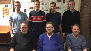 Het huidige bestuur van de Scheidsrechtersvereniging Enschede en Omstreken. Met zittend in het midden voorzitter Hans Reefman. - Foto: SEO