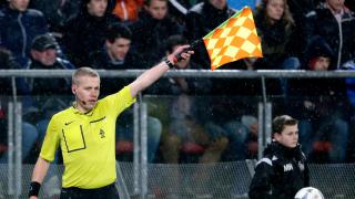 Assistent-scheidsrechter Joost van Zuilen moest volgens de regels wachten met vlaggen voor buitenspel. - Foto: KNVB Media