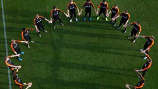 De spelers van het Nederlands elftal maakten deze week een cirkel tegen racisme. - Foto: KNVB Media