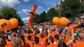 De NOC*NSF boot met daarop een KNVB-delegatie voer mee tijdens de Canal Parade in Amsterdam. - Foto: KNVB Media