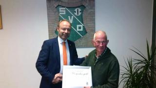 Al sinds 1990 is de heer Kroes vrijwilliger bij SVO, waarvan 20 jaar als penningmeester. Al met al genoeg redenen om de gouden waarderingsspeld uit te reiken.