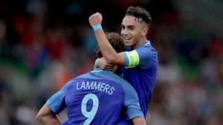 Abdelhak Nouri viert de tweede treffer samen met doelpuntenmaker Sam Lammers. - Foto: KNVB Media