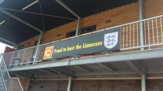 Het paviljoen staat deze weken geheel ter beschikking van de selectie en staf van bondscoach Mark Sampson. De kantine doet dienst als warming-up ruimte, er is een aparte perskamer en enkele kleedkamers zijn omgetoverd in een materialenhok en medische ruimte. Ook staan er twee grote vriezers, onder meer voor de ijskoelers. Langs het veld hebben de media volop ruimte om hun werk te doen en elke toeschouwer krijgt vandaag een goodie bag - met vlag, pet, sleutelhanger en pen - van The FA, de Engelse bond. De hebbedingetjes vieren gretig aftrek bij de aanwezige jeugd.