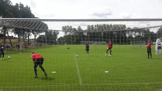 Inmiddels zijn de Engelse vrouwen bezig aan een laatste afwerkoefening. Daarna komen ze naar de lange zijde om de jeugd van Sporting'70 te voorzien van selfies en handtekeningen. "Dit is toch prachtig", zegt bestuurslid Thoen ontroerd. Al weken is de club bezig met het gastheerschap van de Lionesses. "Er zijn ontzettend veel activiteiten georganiseerd door de club. Een EK Voetbalfeest voor meiden tot en met dertien jaar, een dartsavond, een pubquiz en een avond vol Engelse voetbalverhalen en anekdoktes. Ook zijn we met 150 meiden op de fiets naar de oefeninterland Nederland-Frankrijk geweest. Al honderd dagen lang dragen we als club uit dat we trots zijn op het hosten van de Engelse ploeg."