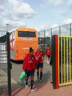 Een prachtige ervaring, maar de focus ligt inmiddels vol op het EK. Na het brons op het WK twee jaar geleden geldt Engeland nu als een van de topfavorieten voor de Europese titel. Zaterdagochtend arriveert de selectie per teambus op het complex van Sporting'70, met een uitgebreide staf in hun kielzog. Vandaag is het open training, dat wil zeggen dat publiek van harte welkom is om de oefensessie bij te wonen.
